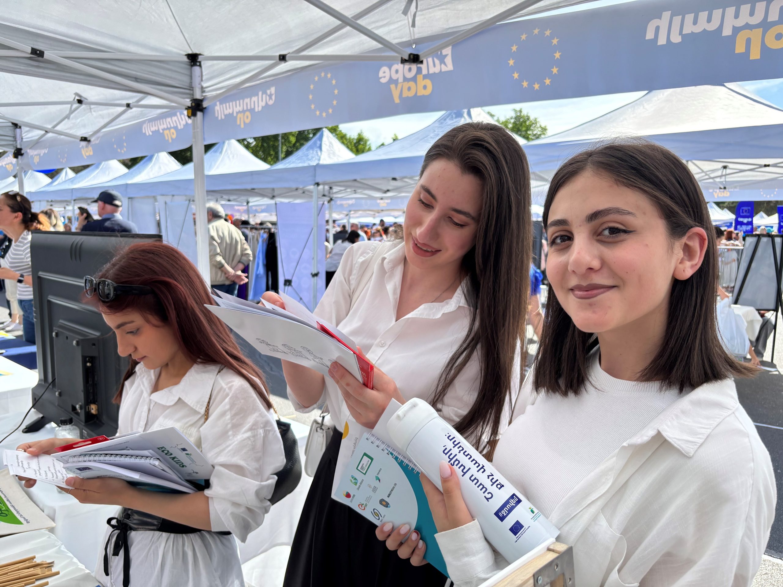 Տասնյակ այցելուներ «Քաղաքապետերի դաշնագիր՝ Արևելք» ծրագրի տաղավարի մոտ նաև հնարավորություն ունեցան շահելու տարբեր մրցանակներ։